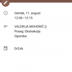V terminu so vidni: ime in priimek pacienta, poseg, telefonska številka in opombe